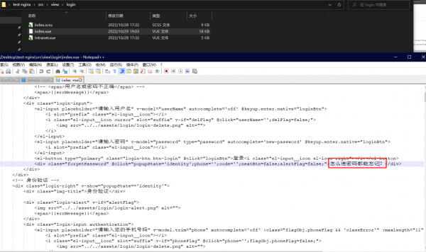 - 在本地修改仓库内的src\view\login\index.vue文件把"忘记了密码"改为"怎么连密码都能忘记?"并把脚本内的curl注释全部删除